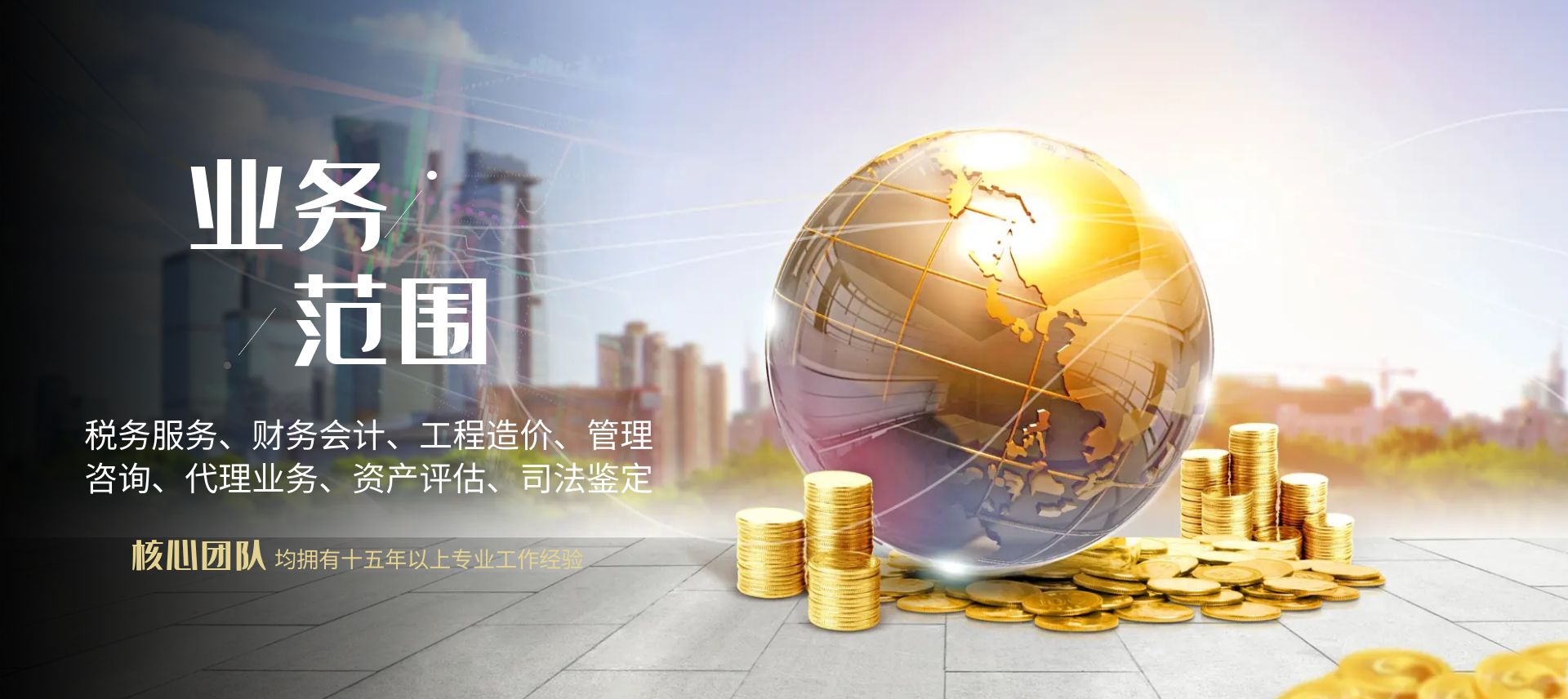 主要業(yè)務(wù)包括:稅務(wù)服務(wù)、財(cái)務(wù)會(huì)計(jì)、工程造價(jià)、管理咨詢(xún)、代理業(yè)務(wù)、資產(chǎn)評(píng)估、司法鑒定。